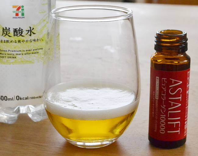 アスタリフトドリンクは味が濃いので、甘みの付いていない炭酸水で割ってみました。